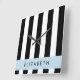 Black and White Stripes, Striped, Lines, Your Name Square Wall Clock