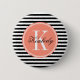 Black and White Stripes with Coral Monogram 6 Cm Round Badge