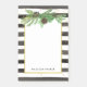 These stylish Christmas post it notes feature black and white watercolor look stripes, and faux gold confetti with a matching faux gold border. Green pine branches with pine cones decorate it, and you can personalise with any name or message.