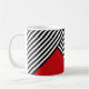 Simple abstract geometric design with black and white stripes and red triangle decoration