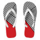 Simple abstract geometric design with black and white stripes and red triangle decoration