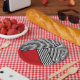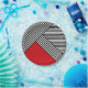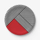 Simple abstract geometric design with black and white stripes and red triangle decoration