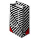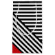 Simple abstract geometric design with black and white stripes and red triangle decoration