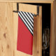 Simple abstract geometric design with black and white stripes and red triangle decoration