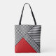 Simple abstract geometric design with black and white stripes and red triangle decoration