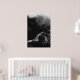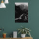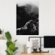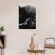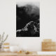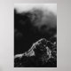 Black and white sun illuminated mountain poster