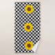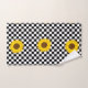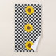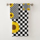 Black and White Sunflower Chequered Flower Pattern Bath Towel Set