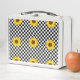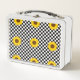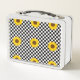 Black and White Sunflower Chequered Flower Pattern Metal Lunch Box