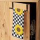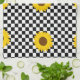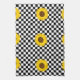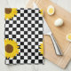 Black and White Sunflower Chequered Flower Pattern Tea Towel