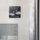 Pretty wedding announcement Save the Date magnet, with a black and white photo of two swans. Customise the text with your own information.