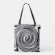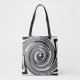 Psychedelic black and white swirling pattern tote bag