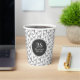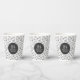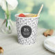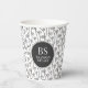 Doodle Swirls in black and white repeating pattern. Paper Cups in black and white personalised with your monogram and name.