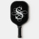 Black and White Swirly Flourish Initial Monogram Pickleball Paddle