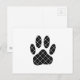 A black and white dog paw print. Custom postcards. Original diamond tartan pattern.