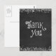 Black and White Thank You Cards. Beautiful vintage black chalkboard background with white font typography. Bokeh light edge accents.