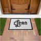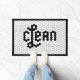 This classy cute black and white faux tile doormat is perfect for your laundry room. Its clean lines, simple colours, and vintage pattern are timeless and versatile. This mat includes a printed vintage style faux tile design that reads “clean” on a rubber based mat that is durable.
