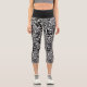 Black And White Tropical Leaf Repeating Pattern Capri Leggings