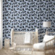 Black and White Tuxedo Cat Blue Pattern Wallpaper