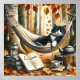 Black and White Tuxedo Cat Dreaming of Adventure Poster