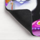 Mouse Pad in an illustration of a black and white tuxedo cat on a cushion, with an exotic, patterned background in shades of magenta and purple
