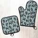 Black and White Tuxedo Cat Pattern Oven Mitt & Pot Holder Set