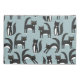 Cute black and white tuxedo cats going about their business. A fun pattern on a mid blue background.