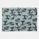 Cute black and white tuxedo cats going about their business. A fun pattern on a mid blue background.