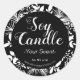 Black And White Twigs And Leaves Soy Candle Classic Round Sticker