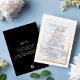 This design features a real foil weddings invitation, with classic black and white, an elegant, typography, calligraphy script, with a photo overlay, a traditional, formal style with a simple, trendy monogram on the back.