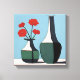 Canvas in a modern, Boho style, minimalist illustration of two black and white vase holding red flowers