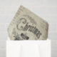 Black and white Victorian style stove, script and poinsettia Christmas tissue paper.