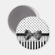 A girly Victorian style black and white pattern with stylish polka dots on the top and trendy style stripes on the bottom divided by eyelet lace and a black ribbon tied into a chic bow.