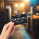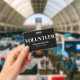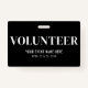A simple and professional volunteer badge design, perfect for events, businesses, or organisations that rely on volunteers. "Volunteer" is prominently displayed at the top, with space below for the event or business name and date.