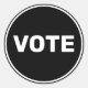 Encourage citizens to register to vote with these black and white vote stickers. The stickers are black. The word vote is in the centre. The text is white.