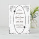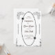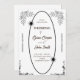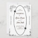 This wedding invitation card features a classic black and white design with elegant floral borders in each corner. The central area is highlighted by a stylish oval shape border, adding a touch of sophistication to the overall design. This invitation is perfect for a traditional and timeless wedding theme.