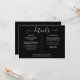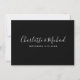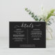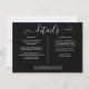 An elegant wedding details information enclosure card personalised with your special details set in stylish typography and your names and wedding date on the reverse on a black background. Designed by Thisisnotme©