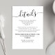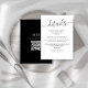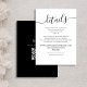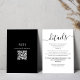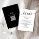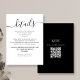 Keep your guests informed with this elegant wedding details card designed in timeless black and white. Featuring minimalist layout and stylish calligraphy script typography, this card includes a convenient QR code linking directly to your wedding website for easy RSVP and additional information. A perfect blend of simple design and modern functionality, this guest reply insert completes your wedding stationery suite with grace and clarity.