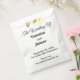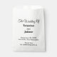 Wedding favour bags with black text on white background for couples seeking a classic and timeless colour combination that can complement various wedding themes. These are also suitable for couples who prefer a text based design without background elements for readability. The black text contrasting on the white background also improves readability. The text is centre aligned and the fonts used are calligraphy, script and sans serif. Calligraphy and script fonts are used to enhance the design while the sans serif font is used to enhance readability. Customise it by typing the names of the bride and groom, date and location of the wedding. You can also change the wording in the design tool including the font style and colour. Please check the appearance after typing text. If the appearance is pleasing to you, you can place your order now. If you need to resize or reposition the text, please adjust in the design tool. To the bride and groom, congratulations on your engagement! Wishing you both a lifetime filled with love and happiness.