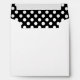 Fun white square wedding invitation envelope, with graphics of a black with white polka dot pattern, on the inside. Graphics of a pink ribbon and custom black return address, on the back flap, is ready to personalise. Great with our matching Polka dot and Gerber daisy wedding invitations.