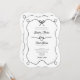 Stylish black and white wedding invitation with a hand-drawn doodle bow, romantic rope heart, and elegant modern calligraphy script. Add your QR code for RSVP online and wedding website for more info. A perfect blend of chic and romantic charm.