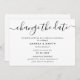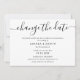 Announce the postponement of your wedding with this minimalist black and white card featuring a modern script font.
