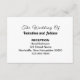Share your wedding reception details with guests using this black and white plain text enclosure card. A design for couples or hosts who prefer plain text without elements in the background for ease of reading. The black texts contrasting on the white background also improves readability. The texts are centre aligned and the fonts used are calligraphy, script and sans serif. Calligraphy and script fonts are used to enhance the style while the sans serif font is used to enhance readability and clarity. Customise it by typing the names of the bride and groom and the reception details. You can also change the contents or wordings in the design tool including the font style, font colour and background colour. Please check the appearance of the front and back sides after typing texts. If the appearance is pleasing to you, you can place your order now. If you need to resize or reposition the texts, please adjust in the design tool. To the bride and groom, congratulations on your engagement! Wishing you both a lifetime filled with love and happiness.