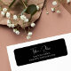 Complete your wedding stationery with our elegant Black and White Wedding Return Address labels. These labels offer a stylish and convenient way to personalise your invitations, thank you cards, and other wedding correspondence. The timeless black and white design exudes sophistication and complements any wedding theme or style. The high-quality printing ensures clear and crisp details, while the self-adhesive backing makes it easy to apply the labels to envelopes or packages. With customisable sections for your names and address, these labels add a personalised touch to your wedding stationery. Save time and effort by effortlessly adding a polished and professional finishing touch to your wedding invitations. Make a lasting impression with our Black and White Wedding Return Address labels and ensure that your wedding correspondence stands out with style and grace. Part of The Black and White Wedding Collection.