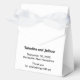 Tent style favor boxes with black text on white background for couples seeking a classic and timeless color combination that can complement various wedding themes. These are also suitable for couples who prefer a text based design without background elements for readability. The black text contrasting on the white background also improves readability. The text is center aligned and the fonts used are script and sans serif. Script font is used to enhance the design while the sans serif font is used to enhance readability. Customize it by typing the names of the bride and groom, date and location of the wedding. You can also change the wording in the design tool including the font style, font color and background color. Please check the appearance after typing text. If the appearance is pleasing to you, you can place your order now. If you need to resize or reposition the text, please adjust in the design tool. To the bride and groom, congratulations on your engagement! Wishing you both a lifetime filled with love and happiness.