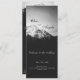 Black and white wedding under the mountains. Landscape photograph of a snow covered mountain with darkness below and white cloudy sky above. Names of the couple are in black font above the mountain in the sky and all the details are in white font below the mountain. Completely customisable and personalizable wedding products.