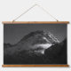 Black and white landscape photograph of high winds blowing snow off mountain.