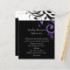 Small RSVP card to match our black and white purple reverse swirl wedding invitation, with bold graphic swirl scroll leaf background. Customise online with your wedding details.