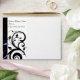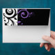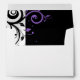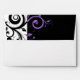 Small RSVP card to match our black and white purple reverse swirl wedding invitation, with bold graphic swirl scroll leaf background. Customise online with your wedding details.