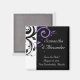 Small RSVP card to match our black and white purple reverse swirl wedding invitation, with bold graphic swirl scroll leaf background. Customise online with your wedding details.