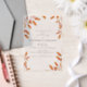 Elegantly simple yet full of natural beauty, this vellum overlay wedding invitation features a clean white background with classic black text, setting a timeless tone for your special day. The striking rust autumn leaves, framed at the top and bottom, add warmth and rustic charm, beautifully contrasting with the minimalist design. The transparent vellum overlay enhances the invitation’s sophistication, making it an ideal choice for couples seeking a refined yet nature-inspired wedding invitation.